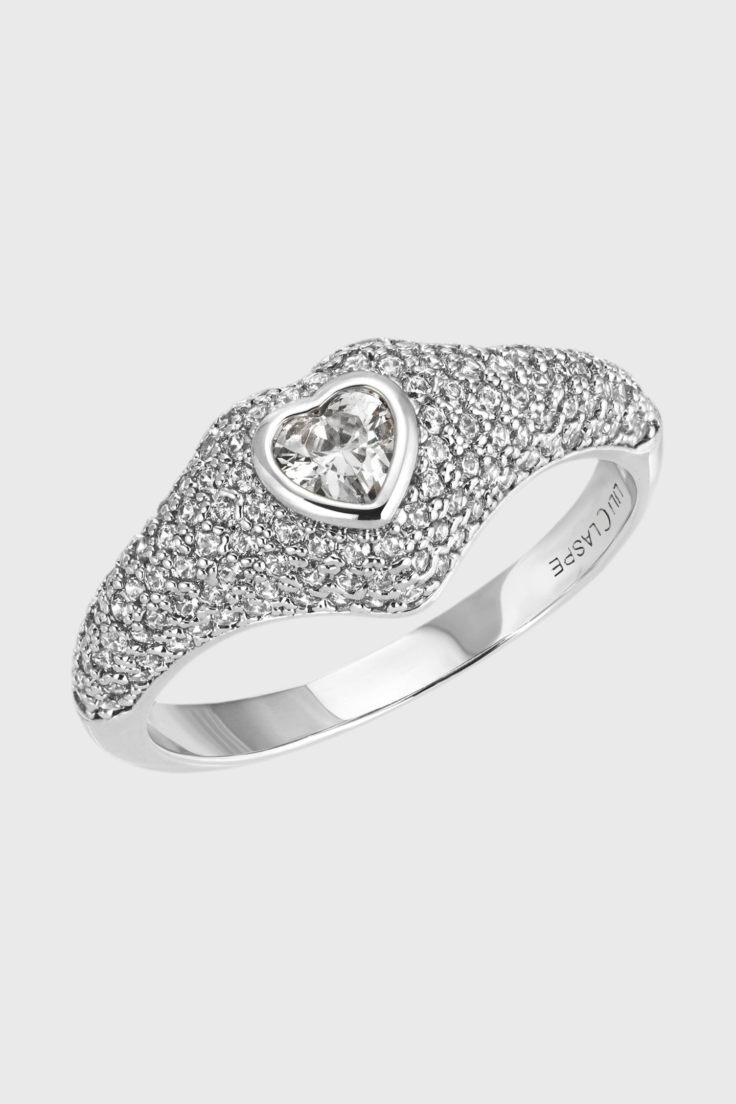 HEART SHAPED WHITE CZ SET IN A THICK PAVE BAND