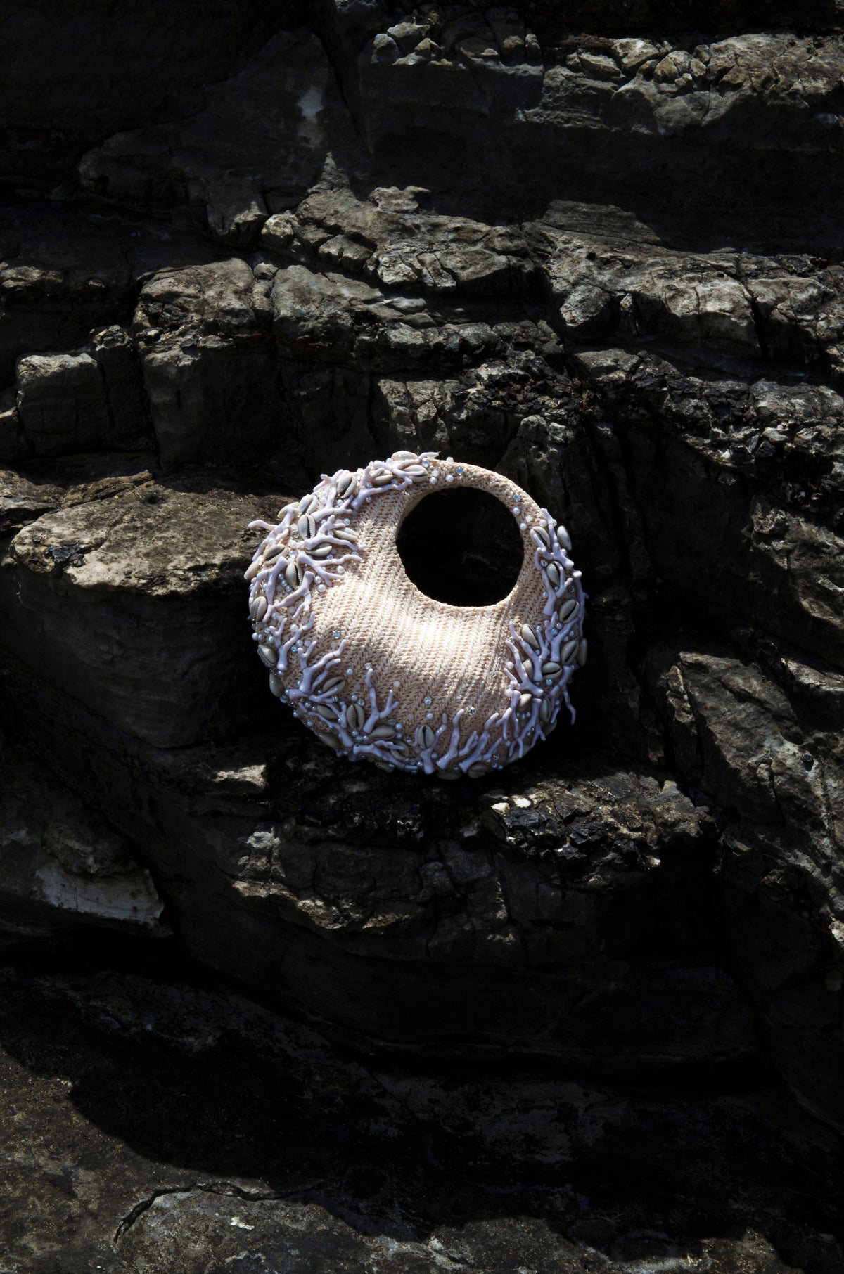 Delicately adorned with seashells and woven from natural raffia, the Lamu Bag brings a breezy sophistication to warm days and golden hour strolls. Its unique circular silhouette adds a touch of playfulness, while the organic textures and artisanal details celebrate the beauty of nature and craft.