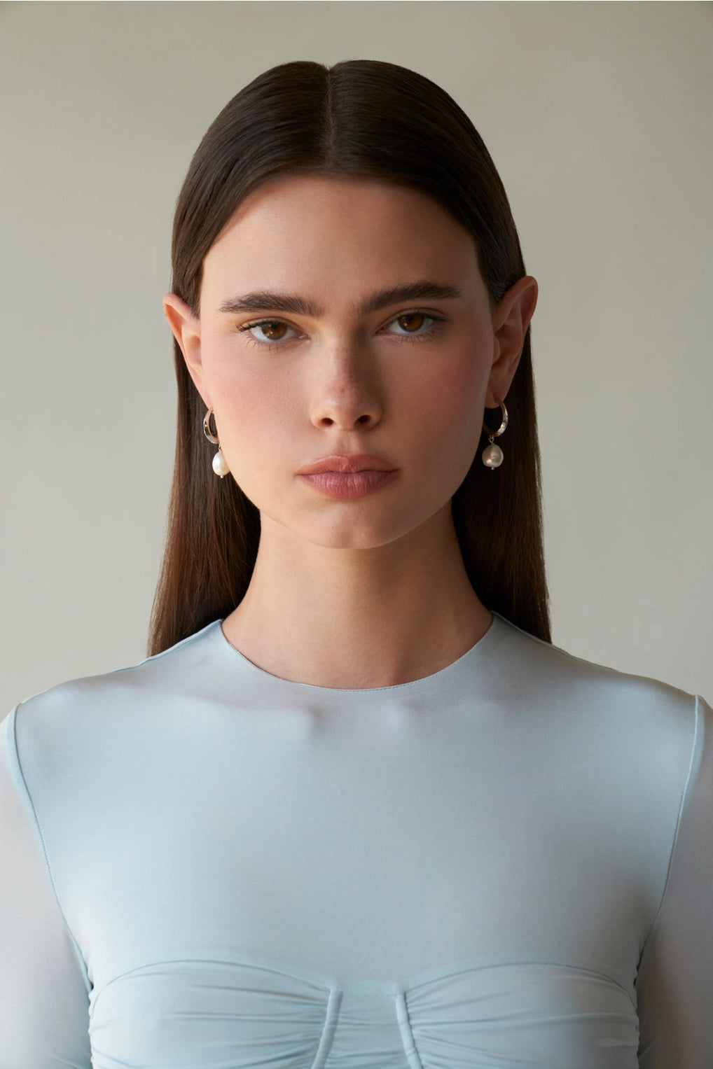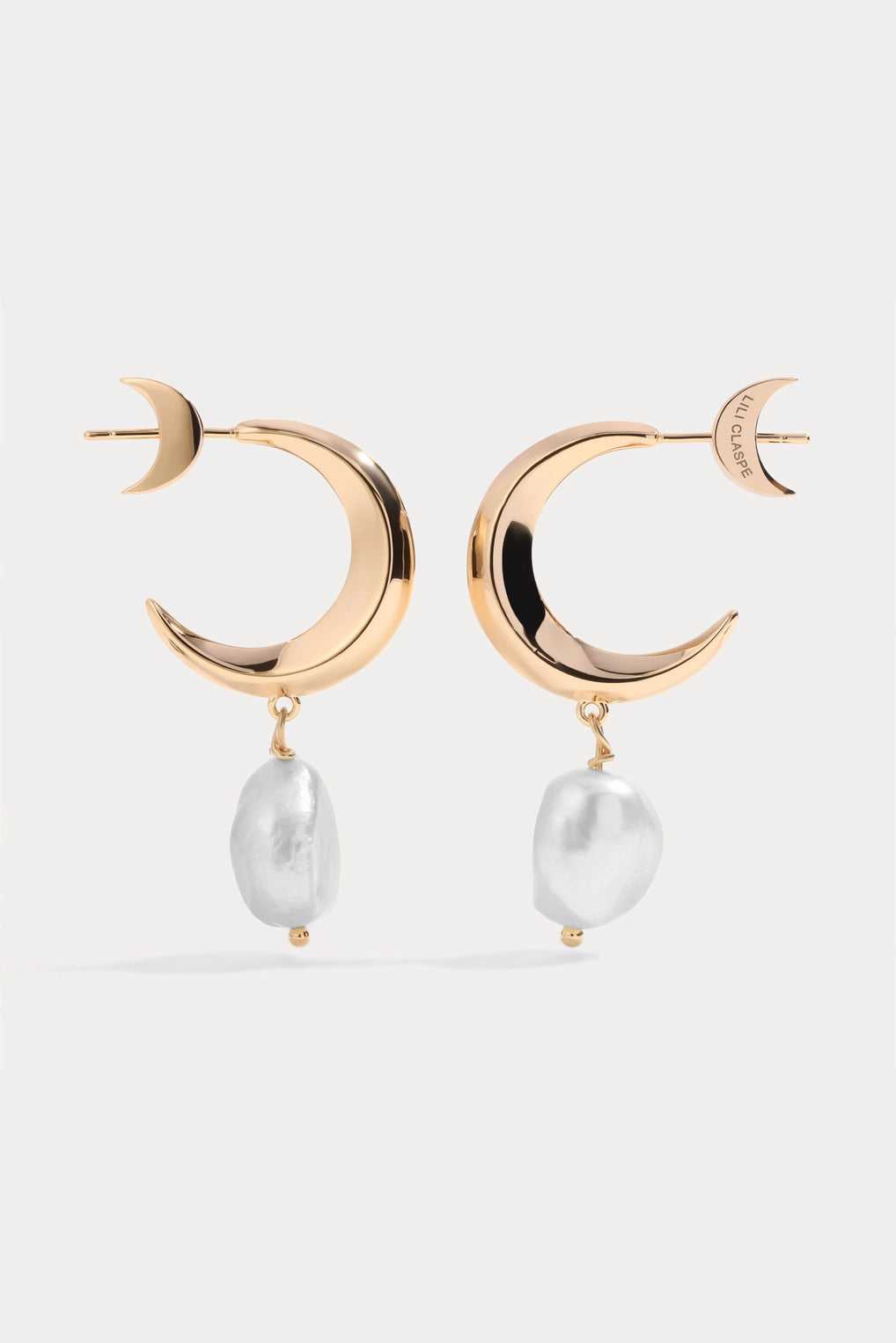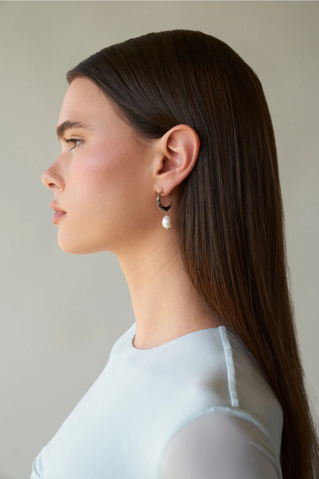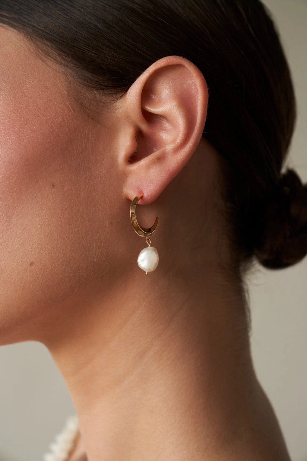 Sleek moon-shaped hoops, these earrings elevate your style with a single, lustrous pearl