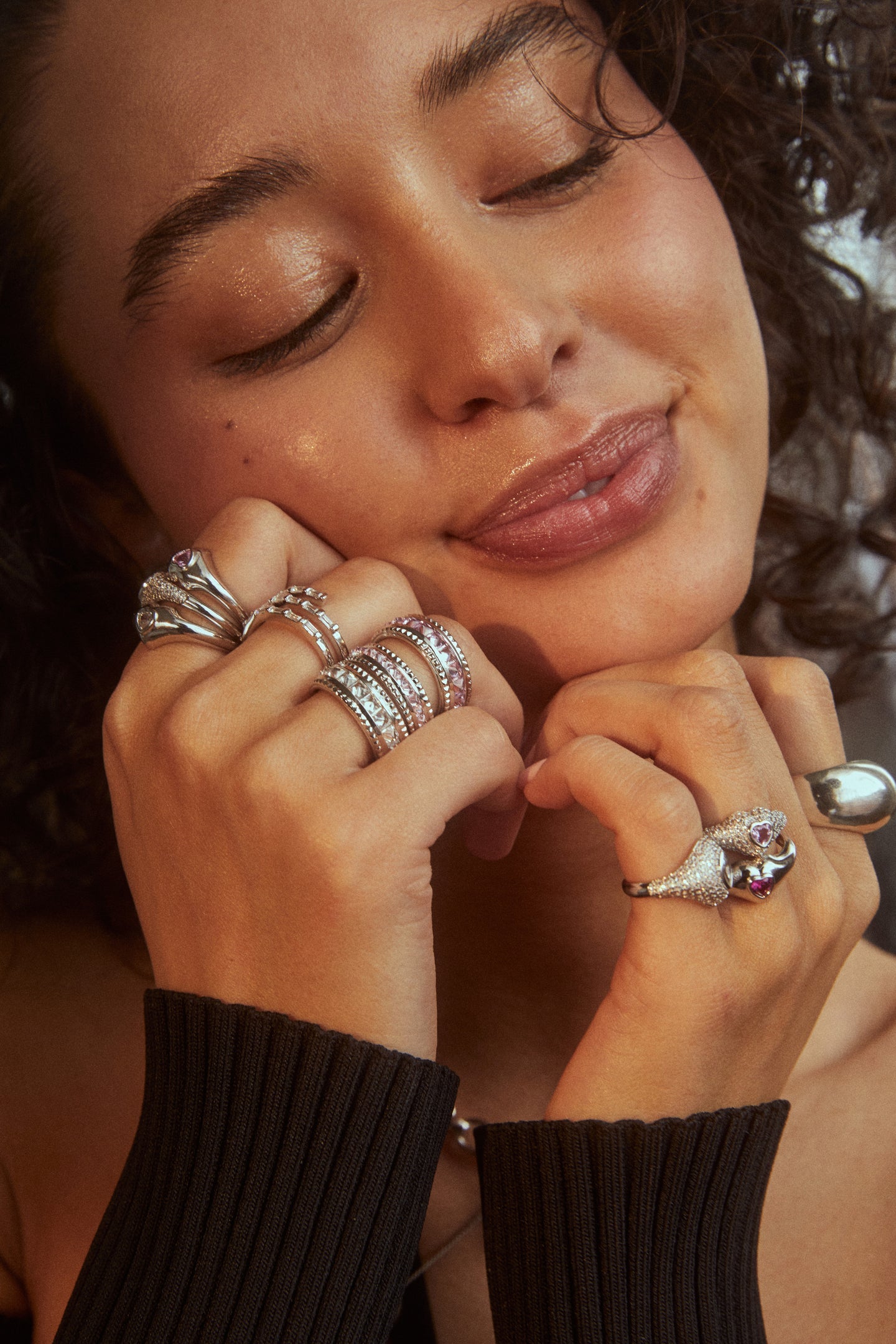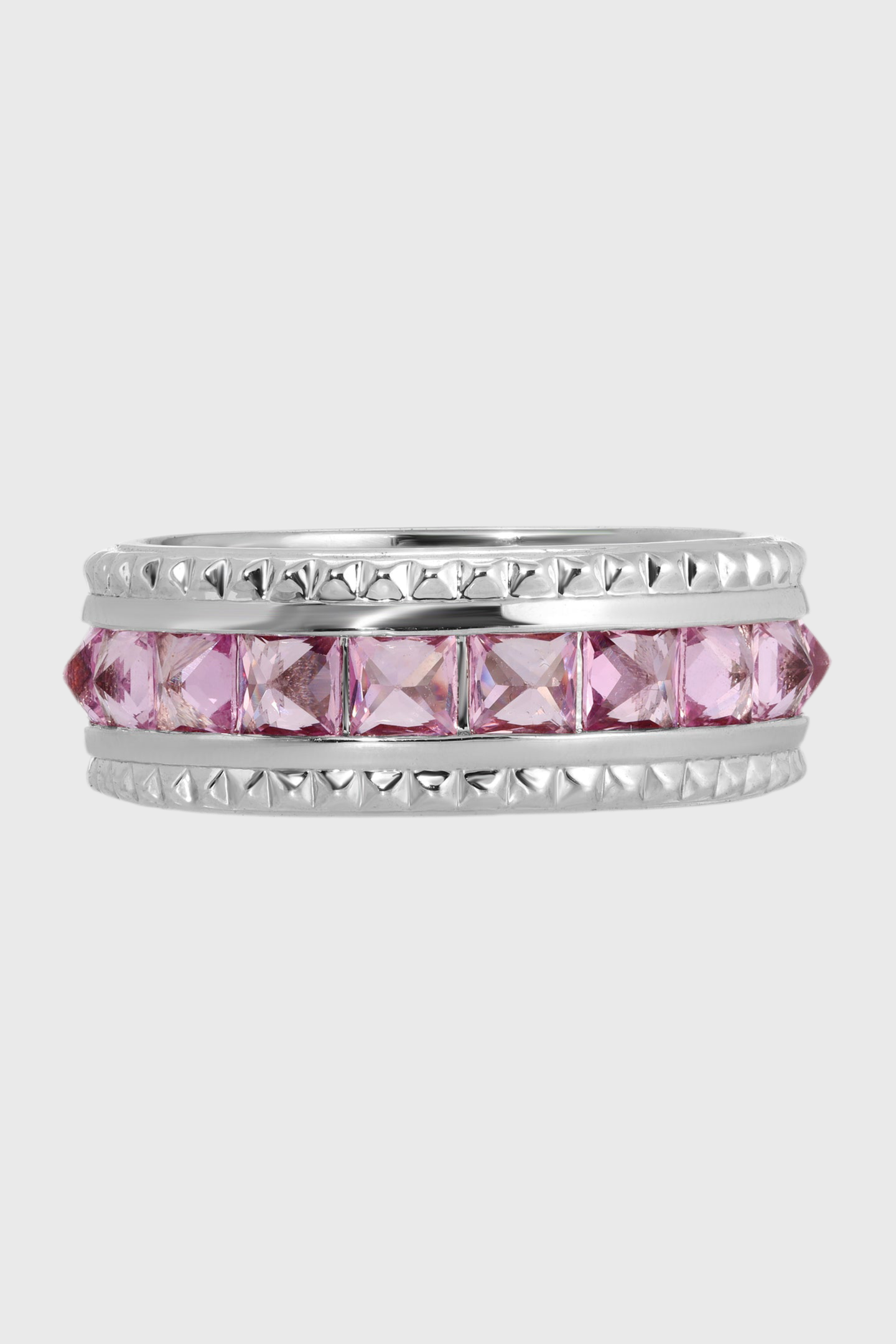 3MM PINK CZ PYRAMID RING WITH DELICATE DIMENSIONAL PYRAMIDS THAT WRAP AROUND